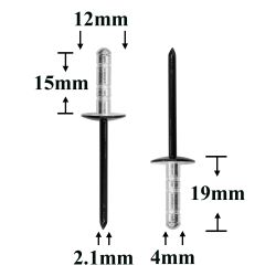 Заклепки 4×16,5 металлические — это универсальный вытяжной крепёж для неразъёмного соединения металлических и пластиковых деталей. Она применяется в кузовных и ремонтных работах, а также при сборке салонных элементов автомобиля.