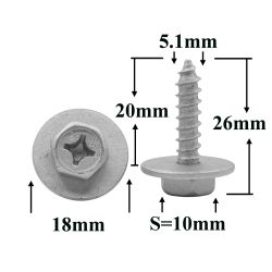 Саморез автомобильный 5.1x20 с шестигранной головкой и шайбой, серебристый S=10 — универсальный крепёж для кузовных элементов легковых авто. Изготовлен из высокопрочной углеродистой стали с антикоррозийным покрытием, он обеспечивает долговечность и надёжность, особенно в условиях российских дорог. Простота монтажа гарантирована — шлиц Phillips (PH).