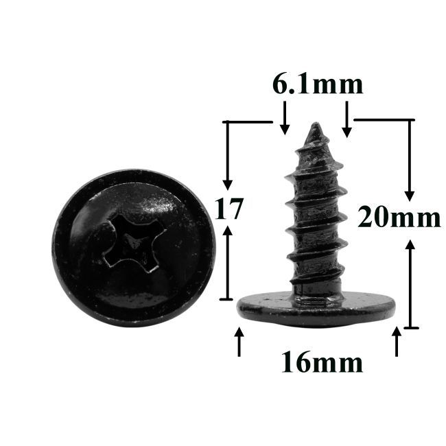 Саморез Черный автомобильный с полукруглой головкой 6,1 мм*16,5 мм