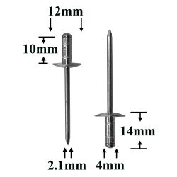 Заклепки 4×11,5 металлические — это универсальный вытяжной крепёж для неразъёмного соединения металлических и пластиковых деталей. Она применяется в кузовных и ремонтных работах, а также при сборке салонных элементов автомобиля.