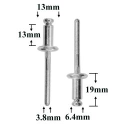 Заклепки 6,3×16,5 металлические — это универсальный вытяжной крепёж для неразъёмного соединения металлических и пластиковых деталей. Она применяется в кузовных и ремонтных работах, а также при сборке салонных элементов автомобиля.