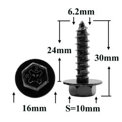 Саморез автомобильный 6,2x24 с шестигранной головкой и шайбой, черный S=10