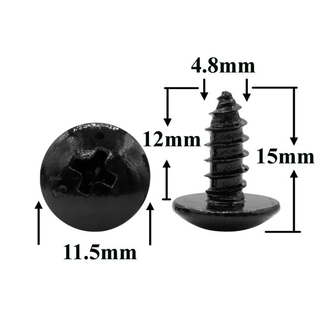 Саморез автомобильный 4,8x12 с полукруглой головкой, черный