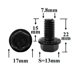 Болт автомобильный М8x15 с фланцем, шестигранная головка, черный S=13