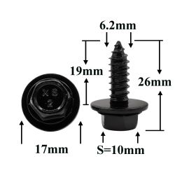 Саморез автомобильный 6,2x19 с шестигранной головкой и шайбой, черный S=10
