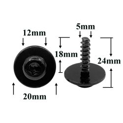 Шуруп автомобильный 5х18 с полукруглой головкой и шайбой, черный, Torx