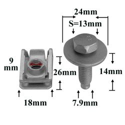 Болт автомобильный М8x14 с шестигранной головкой, шайбой и скобой, S=13