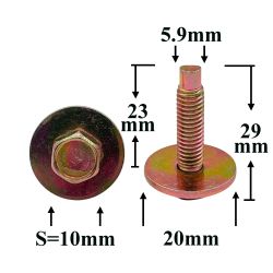 Болт автомобильный М6x23 с шестигранной головкой и шайбой, золотистый S=10