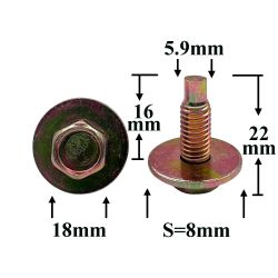 Болт автомобильный М6x16 с шестигранной головкой и шайбой, золотистый S=8