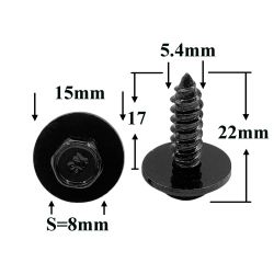 Саморез автомобильный 5,4x17 с шестигранной головкой и шайбой, черный S=8