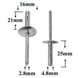 Заклепки 4,8×23 металлические — это универсальный вытяжной крепёж для неразъёмного соединения металлических и пластиковых деталей. Она применяется в кузовных и ремонтных работах, а также при сборке салонных элементов автомобиля.