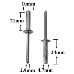Заклепки 5×23 металлические — это универсальный вытяжной крепёж для неразъёмного соединения металлических и пластиковых деталей. Она применяется в кузовных и ремонтных работах, а также при сборке салонных элементов автомобиля.