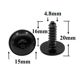Шуруп автомобильный 4,8х16 с фланцем, полукруглая головка, черный, Torx