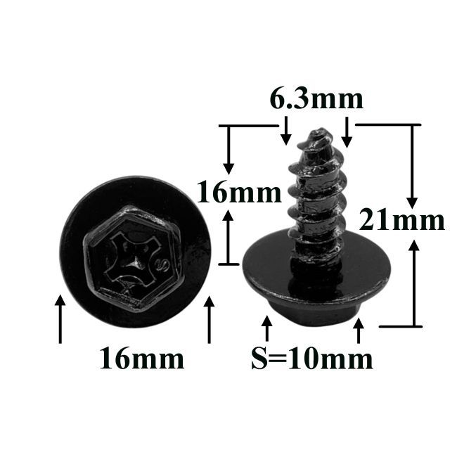 Саморез автомобильный 6,3x16 с шестигранной головкой и шайбой, черный S=10