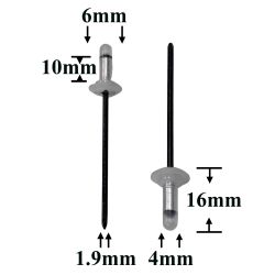 Заклепки 4×12,5 металлические — это универсальный вытяжной крепёж для неразъёмного соединения металлических и пластиковых деталей. Она применяется в кузовных и ремонтных работах, а также при сборке салонных элементов автомобиля.