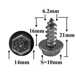 Саморез автомобильный 6,2x16 с шестигранной головкой и шайбой, серебристый S=10