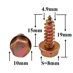 Саморез автомобильный 4,9x15 с шестигранной головкой и шайбой, золотистый S=8