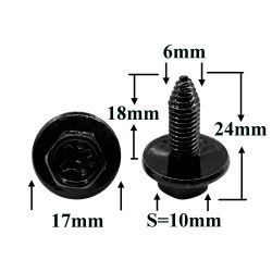 Болт автомобильный М6x18 с шестигранной головкой и шайбой, черный