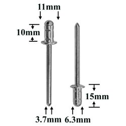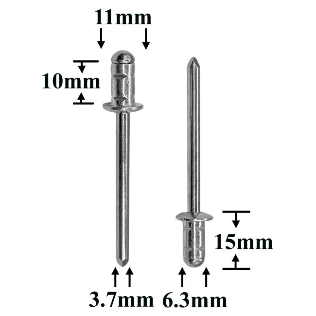 Заклепки 15,3× металлические — это универсальный вытяжной крепёж для неразъёмного соединения металлических и пластиковых деталей. Она применяется в кузовных и ремонтных работах, а также при сборке салонных элементов автомобиля.