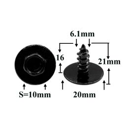 Саморез автомобильный 6,1x16 с шестигранной головкой и шайбой, черный S=10
