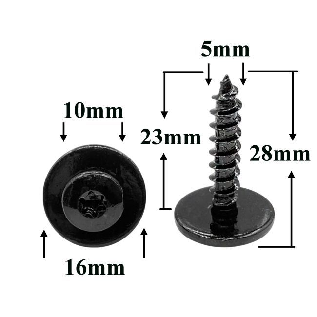 Саморез автомобильный 5х23 с полукруглой головкой и шайбой, черный, Torx