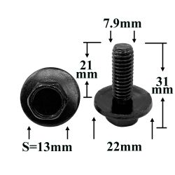 Болт автомобильный М8x21 с шестигранной головкой и шайбой, черный S=13