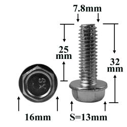 Болт автомобильный М8x25 с фланцем, шестигранная головка, серебристый S=13