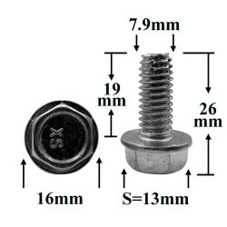 Болт автомобильный М8x19 с фланцем, шестигранная головка, серебристый S=13