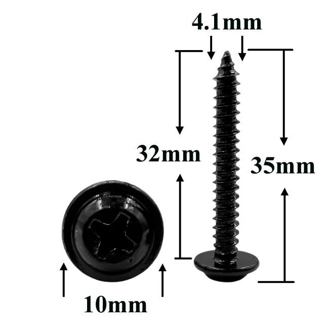 Саморез автомобильный 4.1х32 с фланцем, полукруглая головка, черный — универсальный крепёж для кузовных элементов легковых авто. Изготовлен из высокопрочной углеродистой стали с антикоррозийным покрытием, он обеспечивает долговечность и надёжность, особенно в условиях российских дорог. Простота монтажа гарантирована — шлиц Phillips (PH).