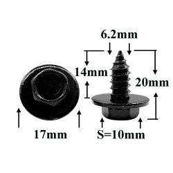 Саморез автомобильный 6,2x14 с шестигранной головкой и шайбой, черный S=10