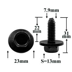 Болт автомобильный М8x22 с шестигранной головкой и шайбой, черный S=13