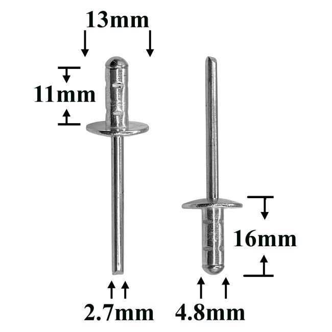 Заклепки 4,7×14 металлические — это универсальный вытяжной крепёж для неразъёмного соединения металлических и пластиковых деталей. Она применяется в кузовных и ремонтных работах, а также при сборке салонных элементов автомобиля.