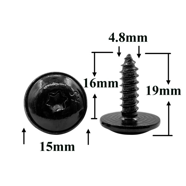 Саморез автомобильный 4,8х16 с фланцем, полукруглая головка, черный, Torx