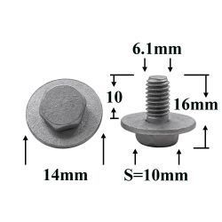 Болт автомобильный М6x10 с шестигранной головкой и шайбой, серебристый S=10