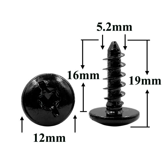Саморез автомобильный 5,2х16 с фланцем, полукруглая головка, черный, Torx