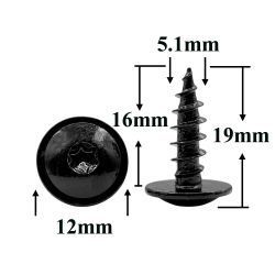 Саморез автомобильный 5,1х16 с фланцем, полукруглая головка, черный, Torx