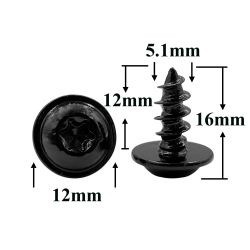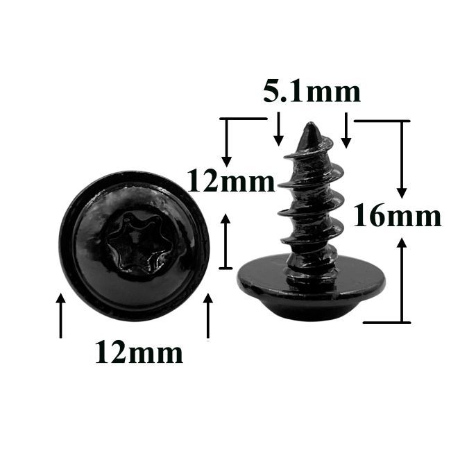Саморез автомобильный 5,1х12 с фланцем, полукруглая головка, черный, Torx