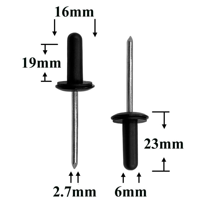 Заклепки 6×19 металлические — это универсальный вытяжной крепёж для неразъёмного соединения металлических и пластиковых деталей. Она применяется в кузовных и ремонтных работах, а также при сборке салонных элементов автомобиля.
