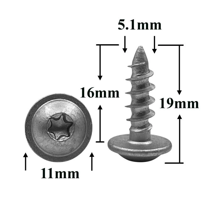 Саморез автомобильный 5,1х16 с фланцем, полукруглая головка, серебристый, Torx