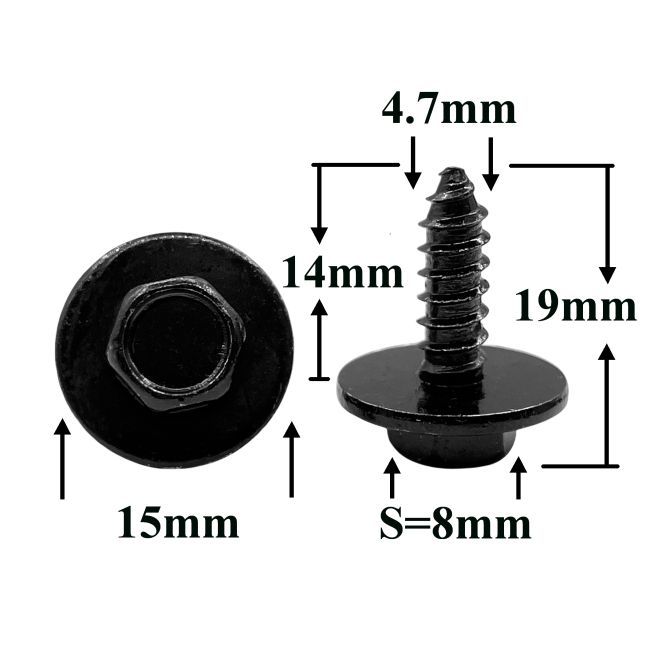 Саморез автомобильный 4,7x14 с шестигранной головкой и шайбой, черный S=8
