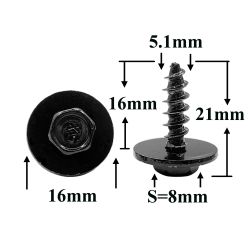 Саморез автомобильный 5,1x16 с шестигранной головкой и шайбой, черный S=8