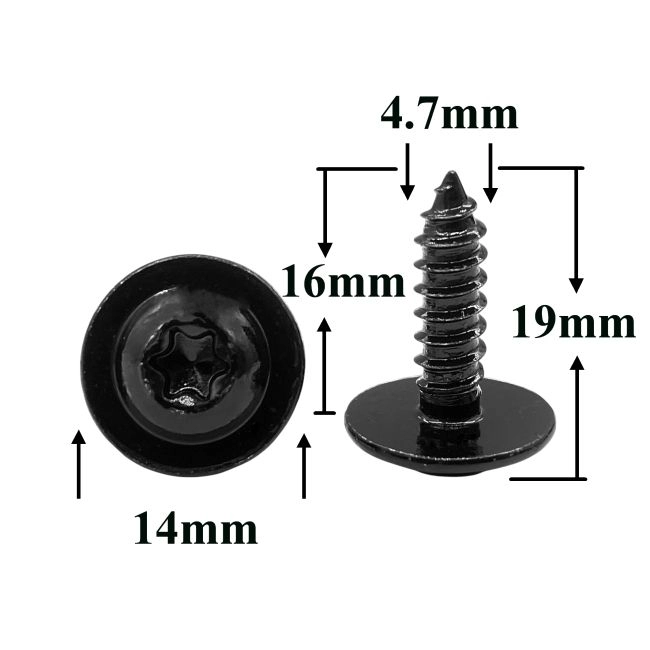 Саморез автомобильный 4,7х16 с фланцем, полукруглая головка, черный, Torx