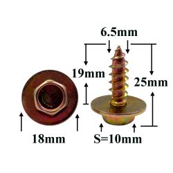 Саморез автомобильный 6,5x19 с шестигранной головкой и шайбой, золотистый S=10