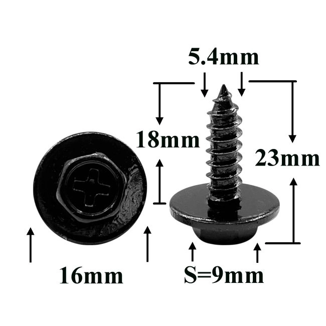 Саморез автомобильный 5,4x18 с шестигранной головкой и шайбой, черный S=9
