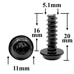 Шуруп автомобильный 5,1х16 с фланцем, полукруглая головка, черный, Torx