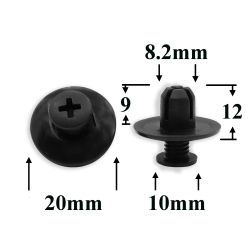 Пистон (клипса) нажимная с резьбовым штырьком, распорная для ACURA, HONDA, INFINITI, NISSAN, MAZDA, LEXUS, TOYOTA,
