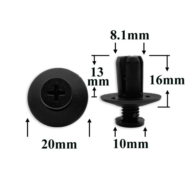 Клипса (пистон) распорный нажимной с резьбовым штырьком для Hyundai, Kia, Ford, Mazda ЭКОНОМ