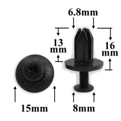 Клипса (пистон) с резьбовым штырьком различной отделки для Acura, Honda ЭКОНОМ