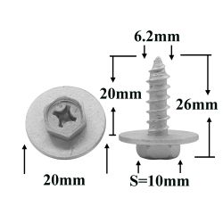 Саморез автомобильный 6,2x20 с шестигранной головкой и шайбой, серебристый S=10
