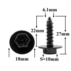 Саморез автомобильный 6.1x22 с шестигранной головкой и шайбой, черный S=10 — универсальный крепёж для кузовных элементов легковых авто. Изготовлен из высокопрочной углеродистой стали с антикоррозийным покрытием, он обеспечивает долговечность и надёжность, особенно в условиях российских дорог. Простота монтажа гарантирована — шлиц Phillips (PH).